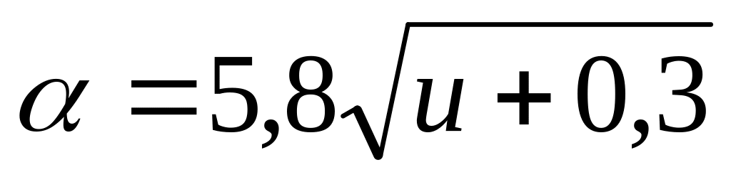 Коэффициент теплообмена определяется по эмпирическим формулам О. Девика в зависимости от средней скорости ветра за время :