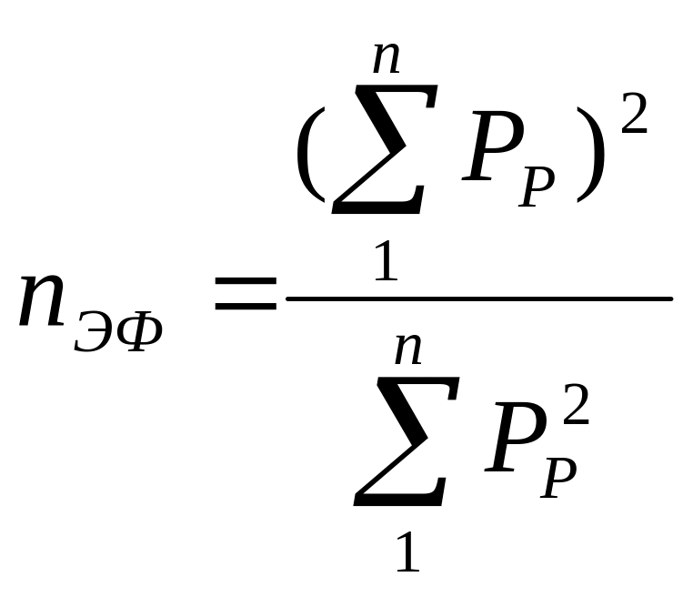 Для больших групп приёмников, разных по мощности и режиму работы, подсчёт суммированных расчётных нагрузок затруднителен. Для упрощения расчётов вводят понятие эффективного числа приёмников – nЭФ.