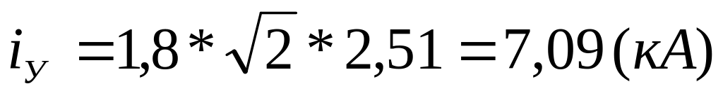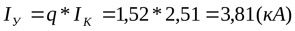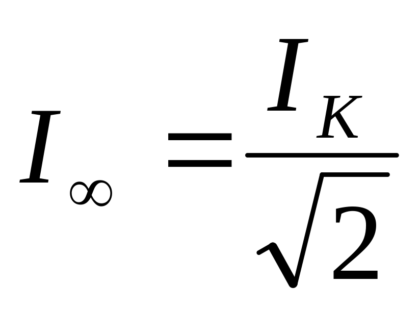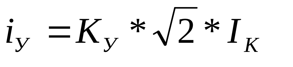 Определяем действительное значения тока через период после возникновения короткого замыкания.