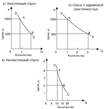 Рис. 14.1. Три формы ценовой эластичности спроса