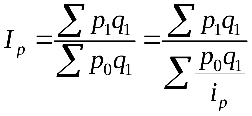 Этот индекс показывает, во сколько раз возросла (уменьшилась) стоимость продукции (товарооборота) отчетного периода по сравнению с базисным, или сколько процентов составляет рост (снижение) стоимости продукции.