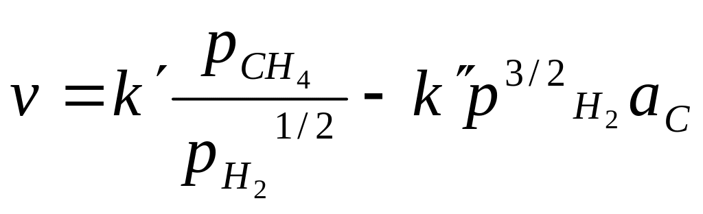 Реакции, как известно, носят обратимый характер, откуда результирующая скорость выражается разностью между скоростью прямой и обратной реакции; в частности, для реакции (15) уравнение будет выглядеть так: