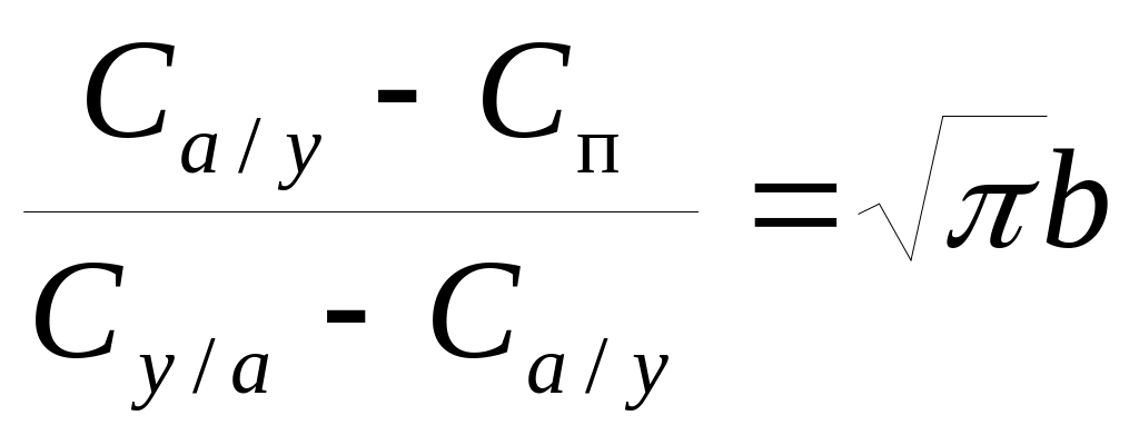 Решение двух уравнений состоит в приравнивании баланса массы вещества на плоской границе раздела x=y. Аналитическое решение указанного случая по схеме, изображенной на рис. 6,б, выглядит так: