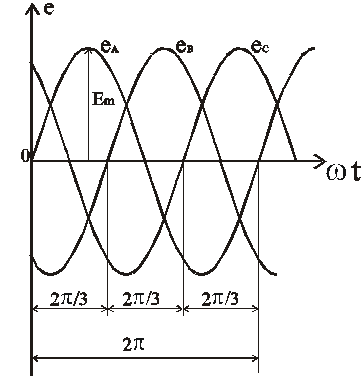 Векторная диаграмма трехфазной симметричной системы ЭДС показана на рис 3.4а.