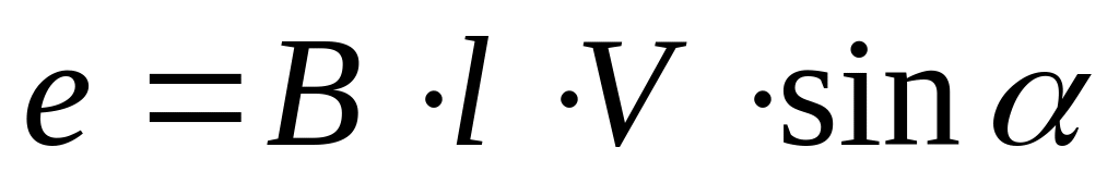где В — величина магнитной индукции, Tл; l - активная длина проводника, м; V - скорость движения проводника, м/сек; α - угол пересечения.