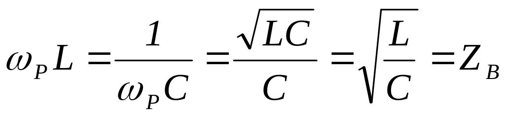 При резонансе напряжений отношение напряжения на катушке индуктивности или конденсатора к напряжению источника равно отношению волнового сопротивления ZВ (характеристическое сопротивление колебательного контура) к активному. Действительно, при резонансе сопротивления реактивных элементов
