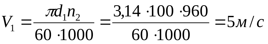 Проверим скорость скольжения, для чего рассчитаем окружную скорость в зацеплении