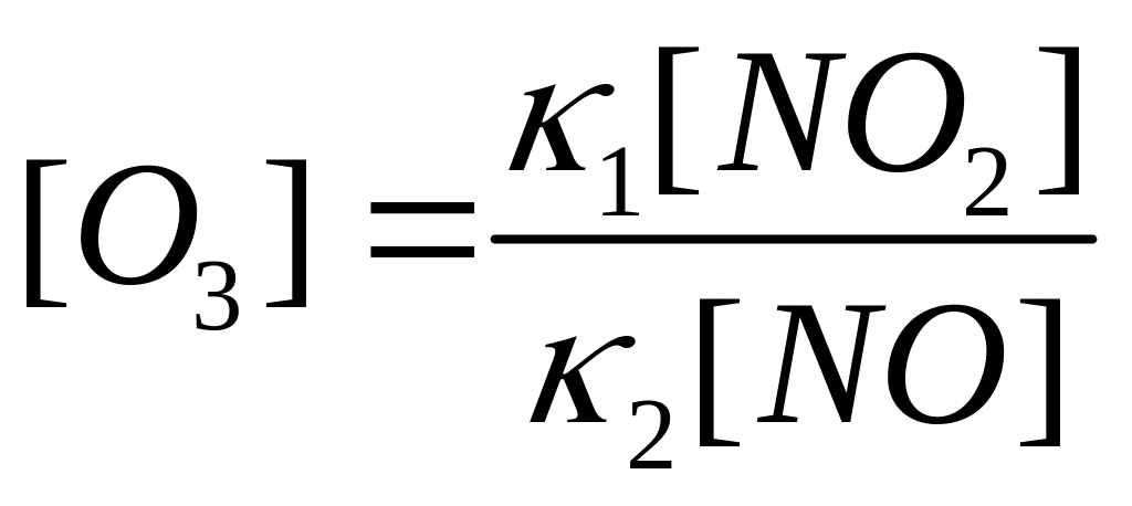 Установлено что увеличение концентрации озона начинается, после того как отношение концентрации NO2 к NO достигает максимума: