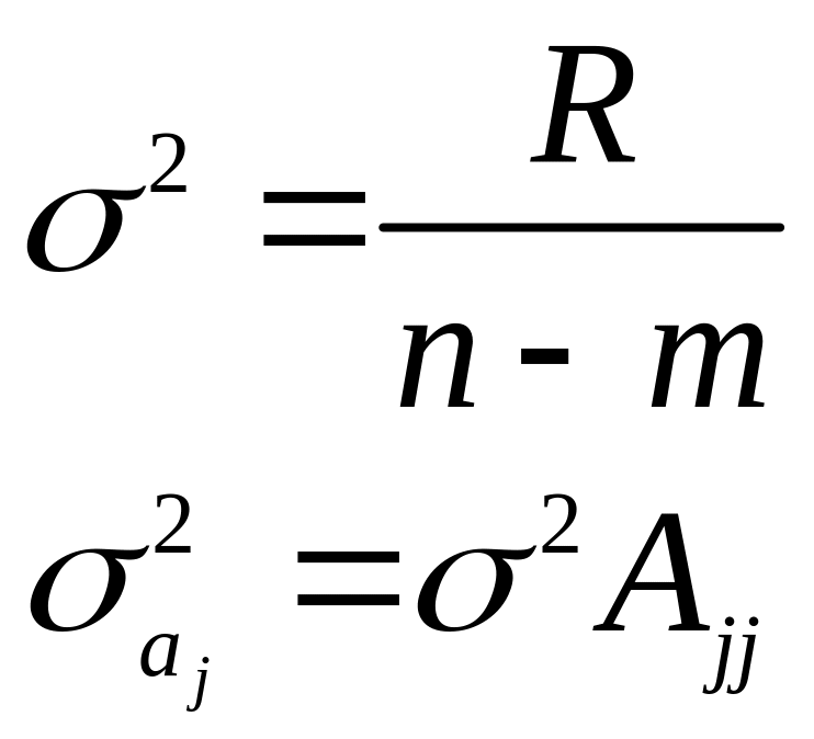 Среднеквадратичная ошибка подгонки и ошибки подгоночных параметров определяются выражениями