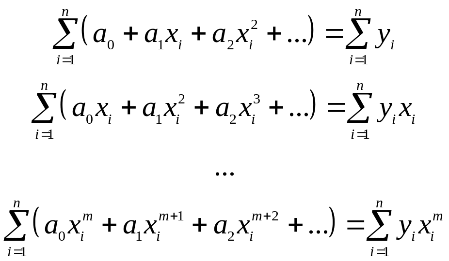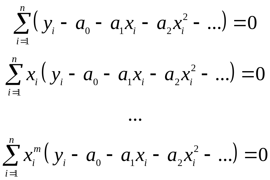 В результате мы имеем систему из m уравнений, линейных по неизвестным коэффициентам полинома