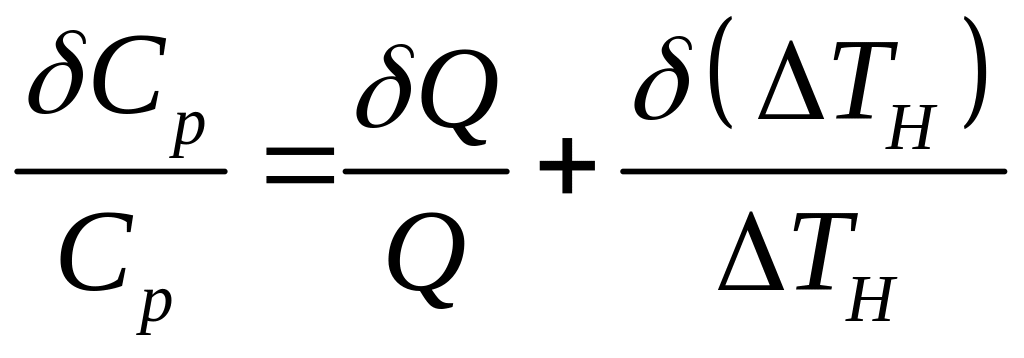Относительная ошибка определения теплоемкости вычисляется по формуле