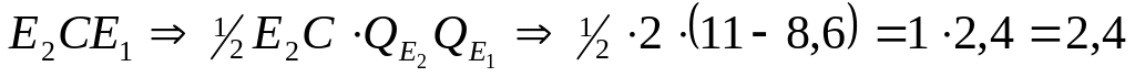 Излишки покупателя также уменьшились и равны площади треугольника РЕ3ВС. Заметим, что РЕ3 = РЕ2 - налог = 8,2 – 2 = 6,2.