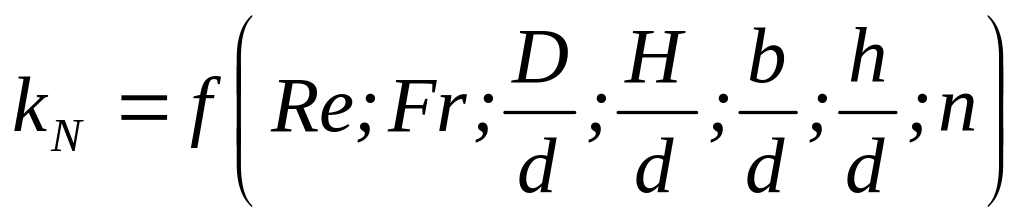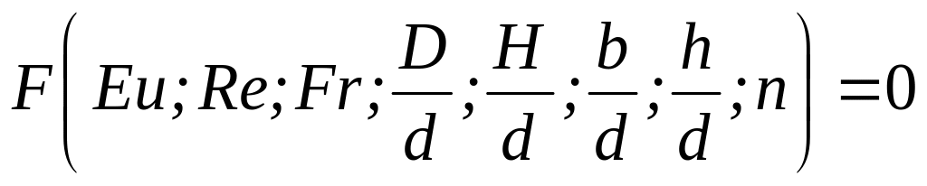 По аналогии можно утверждать, что и решение уравнения Навье—Стокса можно записать F(Sh; Fr; Eu; Re; Г1; Г2; ...)=О, где Г1; Г2 — отношения различных размеров объекта к масштабу L, определяющие его геометрию (геометрические симплексы).