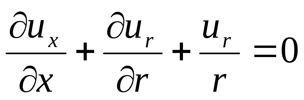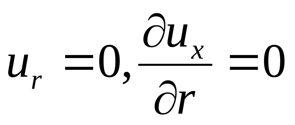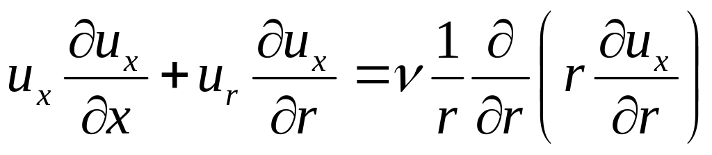 Применение уравнений пограничного слоя необязательно связано с наличием взаимодействия жидкости с твердыми стенками. Они могут быть применены в случае, когда внутри потока имеется слой жидкости, в котором преобладающую роль играют силы трения. Примером такого течения является ламинарное течение затопленной струи (рис. 6.13). Уравнения пограничного слоя, записанные в цилиндрических координатах с учетом того, что давление во всем объеме жидкости постоянно, примут вид: