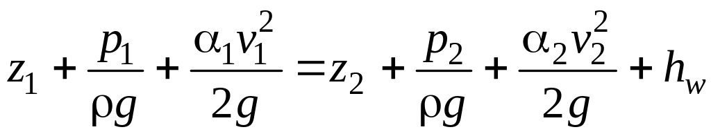 Уравнение (7.6) представляет собой баланс энергий. Слагаемое hw — удельная диссипированная энергия или гидравлические потери.