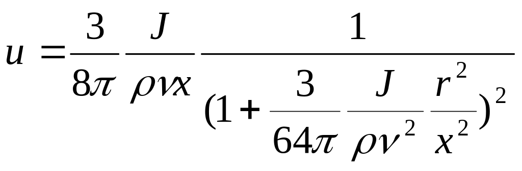 Теоретически найденное поле осевых скоростей [1] описывается уравнением