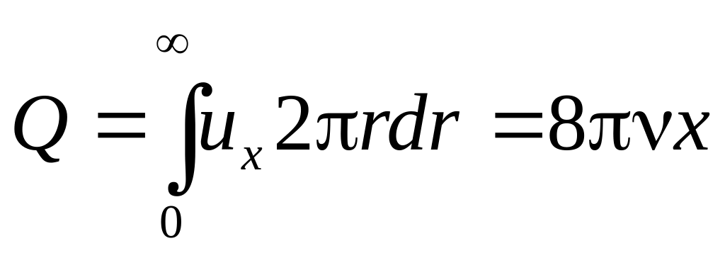 Из анализа (6.70) видно, что с удалением от отверстия скорость в струе уменьшается. При этом, однако, количество увлекаемой в движение жидкости увеличивается, струя расширяется и расход жидкости