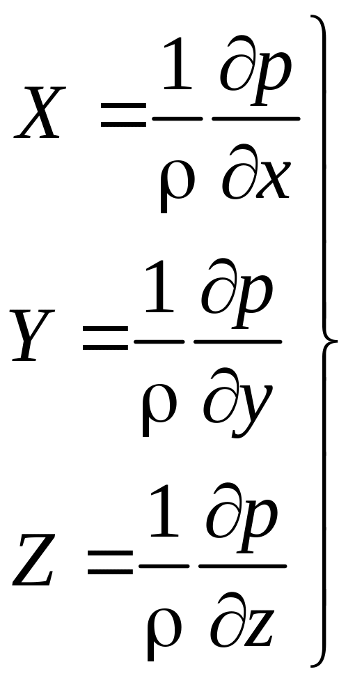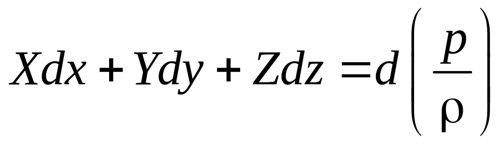Поскольку р=р (х, у, z), то выражение в круглых скобках есть полный дифференциал давления dp. Если =const, то