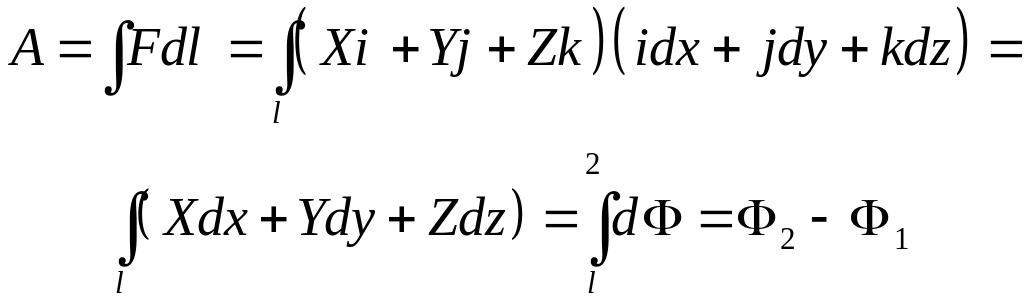 где Ф1 и Ф2 — значения потенциалов в конечных точках пути l.