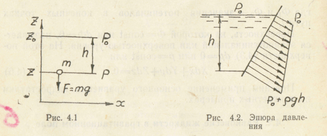 На жидкостные частицы с массой т действует сила тяжести G=gm, т. е. F=G/m=g. Следовательно, (рис. 4.1)