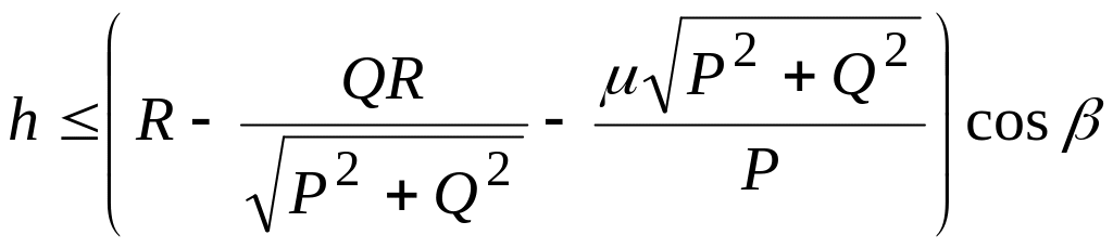 где h – максимальная высота точки контакта препятствия с диском над нижней точкой диска (высота препятствия); R – радиус диска; Q – нагрузка на препятствие от веса машины; P – сила тяги; m – коэффициент трения качения, b - угол атаки диска.