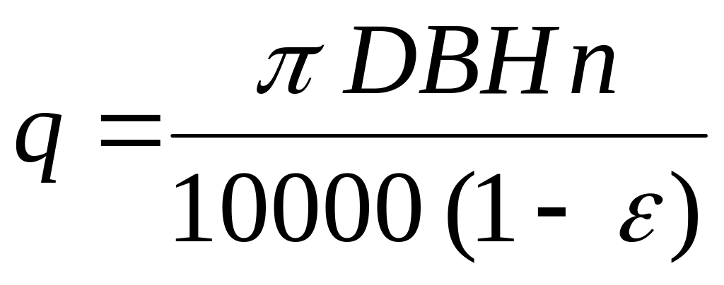 Допустимое отклонение массы высеянных семян от q не должно превышать 3 % для посева в открытом грунте и 2 % – в теплице. Число n принимают 10…50 оборотов для лесных сеялок. Величина e = 0,05…0,15 для условий лесного питомника.