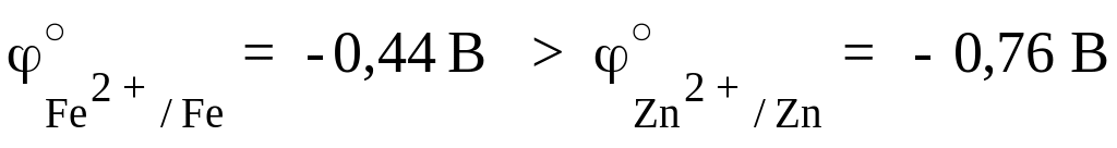 Пример 9.9 Составить уравнения анодного и катодного процессов, протекающих при контактной коррозии гальванопары железо-цинк с кислородной деполяризацией катода в нейтральной среде.