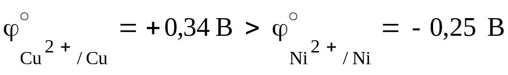 Пример 9.8 Составить уравнения анодного и катодного процессов, протекающих при контактной коррозии гальванопары медь-никель с водородной деполяризацией катода в кислой среде.