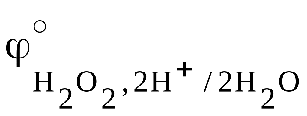 Из величин стандартных электродных потенциалов следует, что окислительные свойства H2O2 наиболее сильно проявляются в кислой среде, а восстановительные – в щелочной. Например, пероксид водорода в кислой среде способен окислять те вещества, стандартный потенциал электрохимической системы которых не превышает +1,776 В, и восстанавливать только те, у которых потенциал больше +0,682 В.