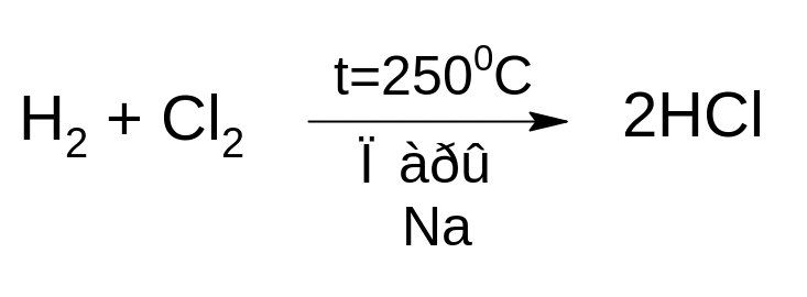 Особым примером сопряженных реакций является реакция между хлором и водородом. При температуре 150—250°С в темноте реакция практически не идет. Однако она протекает с высокой скоростью в тех же условиях в присутствии паров натрия: