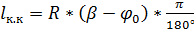 где lк.к – длина оставшейся части круговой кривой после разбивки переходных кривых:
