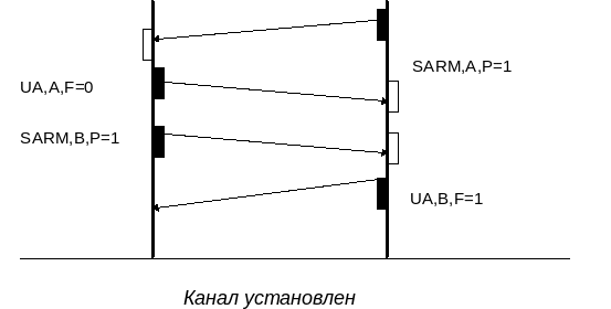 Рассмотрим первую фазу: Установление канала осуществляется при использовании ненумерованных кадров.