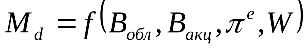 Представители монетаристской концепции отвергли идею спекулятивного мотива, определяющего спрос на деньги как на объект имущества. Они считали, что при наличии множества активов, приносящих доход, хранить деньги с целью спекуляции на ценных бумагах нерационально. Поэтому субъекты формируют портфель финансовых активов из активов равной степени доходности рисков для обеспечения желаемого уровня доходности. Отсюда, спрос на деньги имеет вид: