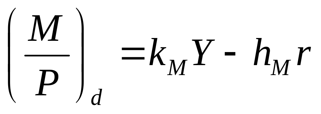 Функция спроса на деньги (реальные денежные остатки) , имеющая линейную зависимость, выражена формулой