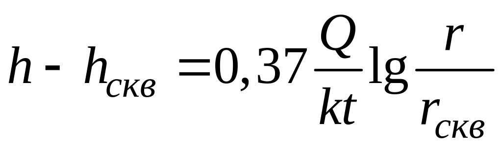 Разделив переменные и проинтегрировав в пределах от rскв до r и от hскв до h, получим при Q = const и k = const:
