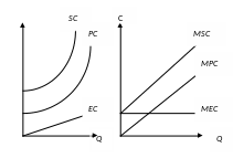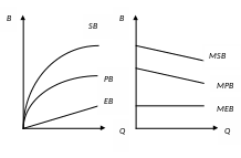 Частная выгода (PB) — это увеличение благосостояния потребителя от потребления данного блага (прививка, получение образования, и др.). Внешняя выгода (EB) — это рост благосостояния третьих лиц от производства и потребления данного блага. Общественная (социальная) выгода (SB) — это совокупная выгода всех лиц, которых затрагивает производство и потребление данного блага.