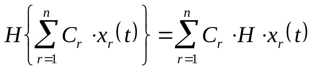 Оператор H называется линейным, если при любых числах C1 ,..,Cn и любых функциях x(t),..,xn(t) выполняется равенство: