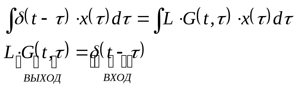 Из уравнения (5) вытекает очень важный факт, что ядро , которое называется функцией Грина, удовлетворяет тому же дифференциальному уравнению, если входное воздействие заменить на - функцию.