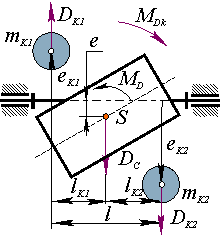 Для этого достаточно разместить на роторе две корректирующих массы. Массы выбираются и размещаются так, чтобы момент их дисбалансов был по величине равен, а по направлению противоположен моменту дисбалансов ротора, а векторная сумма дисбалансов была равна и противоположно направлена вектору. B этих зависимостях радиусам и расстояниями между корректирующими плоскостями задаются по условиям удобства размещения противовесов на роторе, а корректирующие массы рассчитывают.