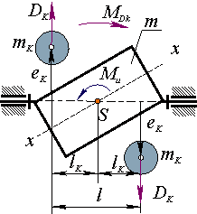 При моментной неуравновешенности главная центральная ось инерции пересекает ось вращения в центре масс ротора, т.е. главный вектор дисбалансов равен нулю, а главный момент дисбалансов не равен нулю. Следовательно, необходимо уравновесить только момент дисбалансов.