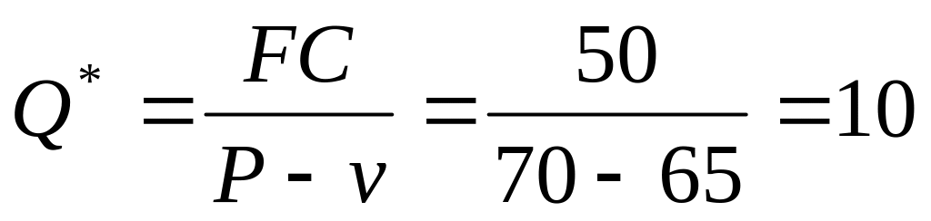 Постоянные расходы компании составляют 50 тыс. руб. Переменные расходы на единицу продукции – 65 руб., цена единицы продукции – 70 руб. Определить критический объем продаж, а также объем продаж, обеспечивающий прибыль в размере 15 тыс. руб.