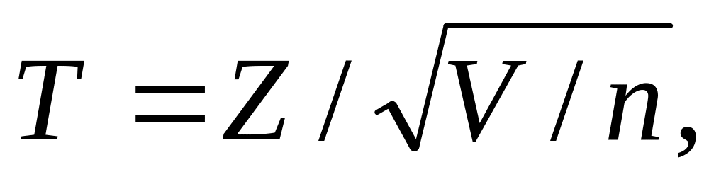 Пусть Z— нормальная случайная величнна с параметрами а = 0 и σ = 1, a Y — независимая от Z величина, распределенная по закону χ2 с п степенями свободы. Тогда случайная величина, распределенная по закону