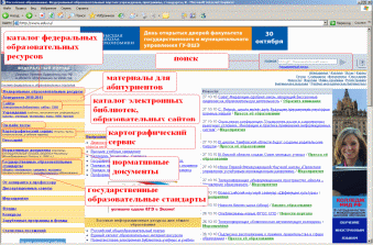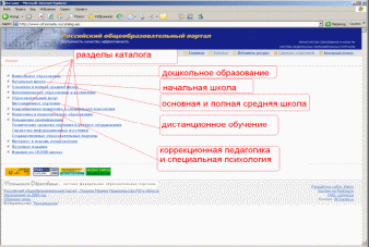 Нет разделения материала по предметам, возрастным категориям. Объединение в разделы по характеру ресурса (библиотека, электронные СМИ и т. д.);