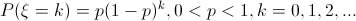 4) Дискретная геометрическая случайная величина (геометрическое распределение). Закон распределения геометрической дискретной случайной величины имеет вид