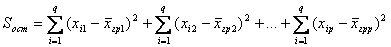 - остаточная сумма квадратов отклонений наблюдаемых значений группы от своего группового среднего, характеризующая рассеяние внутри групп.