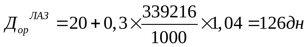 Дор –количество дней простоя автомобиля в ТО-2и ТР за цикл.