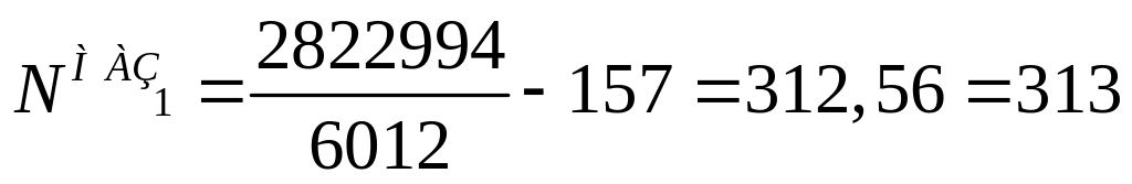 Для расчета количества технических обслуживаний, выполненных за год используются формулы: