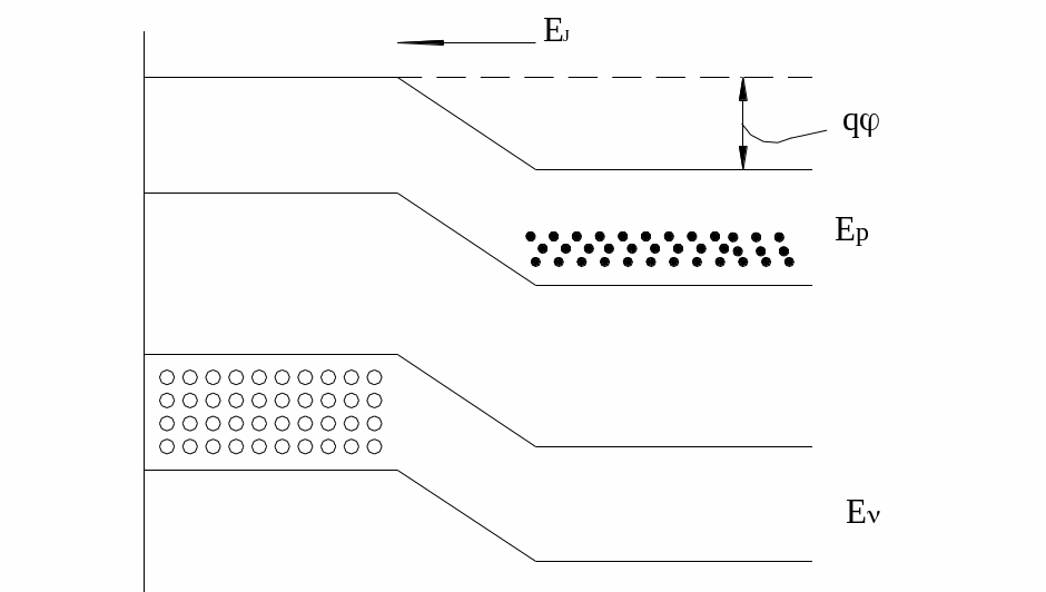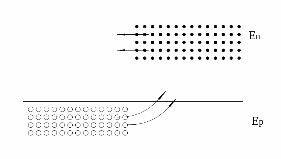 Приложим обратное напряжение (“+” к n – обл.). В этом случае внешнее электрическое поле совпадает по направлению с диффузионным. При приложении обратного напряжения потенциальный барьер для основных носителей заряда увеличивается. Преодолеть его могут только электроны с большой энергией. В любой точке полупроводника, кроме примесной концентрации носителей заряда, существует и собственная концентрация носителей заряда. Для них обратное напряжение является прямым. В этом случае говорят об экстракции электронов неосновных носителей зарядов.