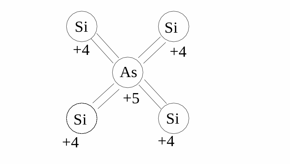 Валентные элементы атомов мышьяка образуют ковалентную связь с валентными элементами атомов кремния при этом остаётся один свободный электрон. Этот электрон находится вне валентной зоны и легко может перейти а зону проводимости.