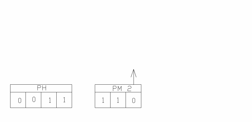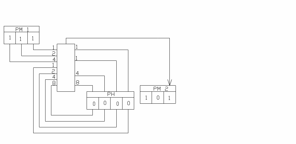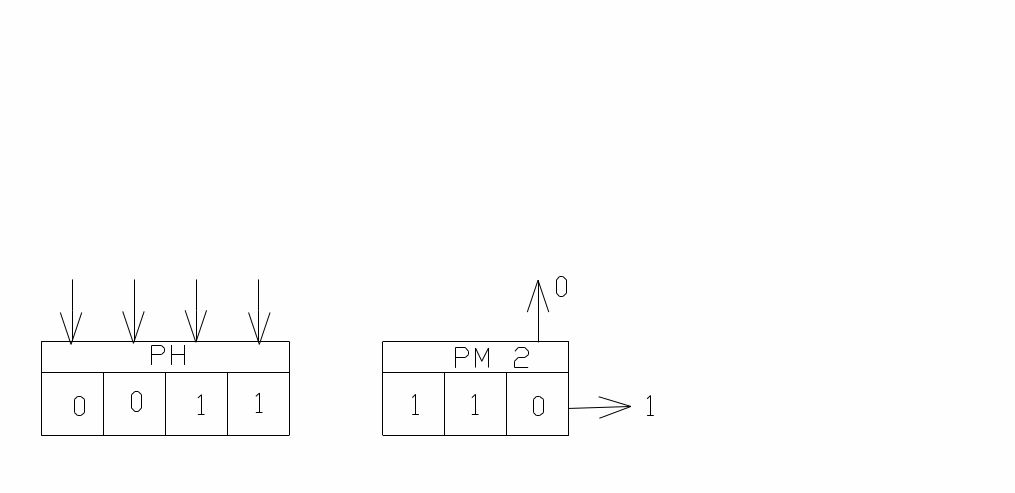 РМ 2 – регистр множителя, который представляет три младших разряда, разряда регистра накопителя РН